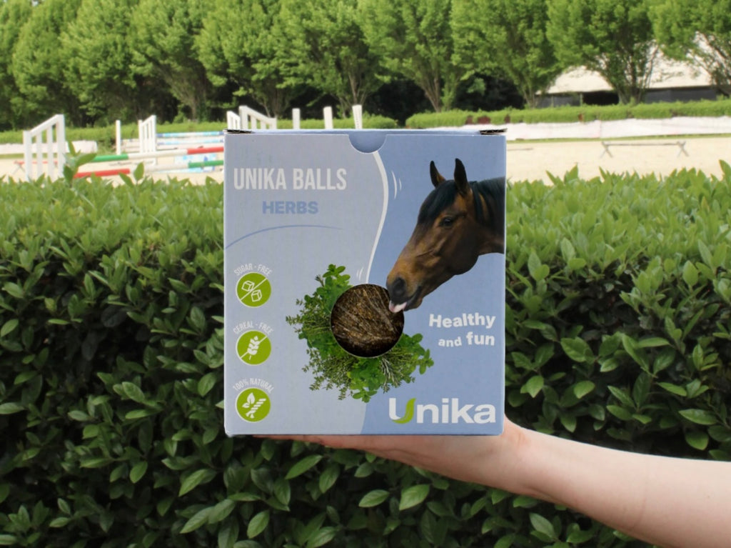 Unika Balls have been designed for your horse to lick throughout the day. With a rope made of natural fibres, they can be hung up inside stalls or trailers. Unika Balls aren't just a way to entertain your horses, but they’re also a completely new tool to enrich their diets with some important substances.